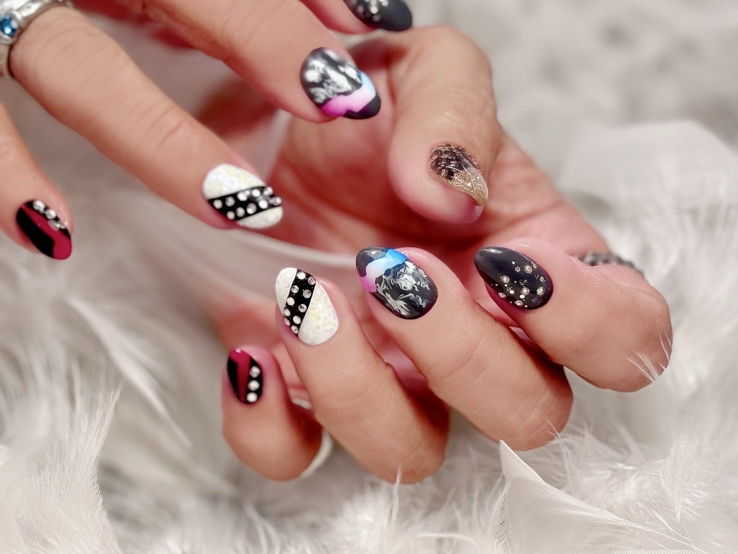今回は、お客様の推し色であるピンクと、お客様ご自身のお好きなブラックを組み合わせ、華やかさとクールさを両立しています。