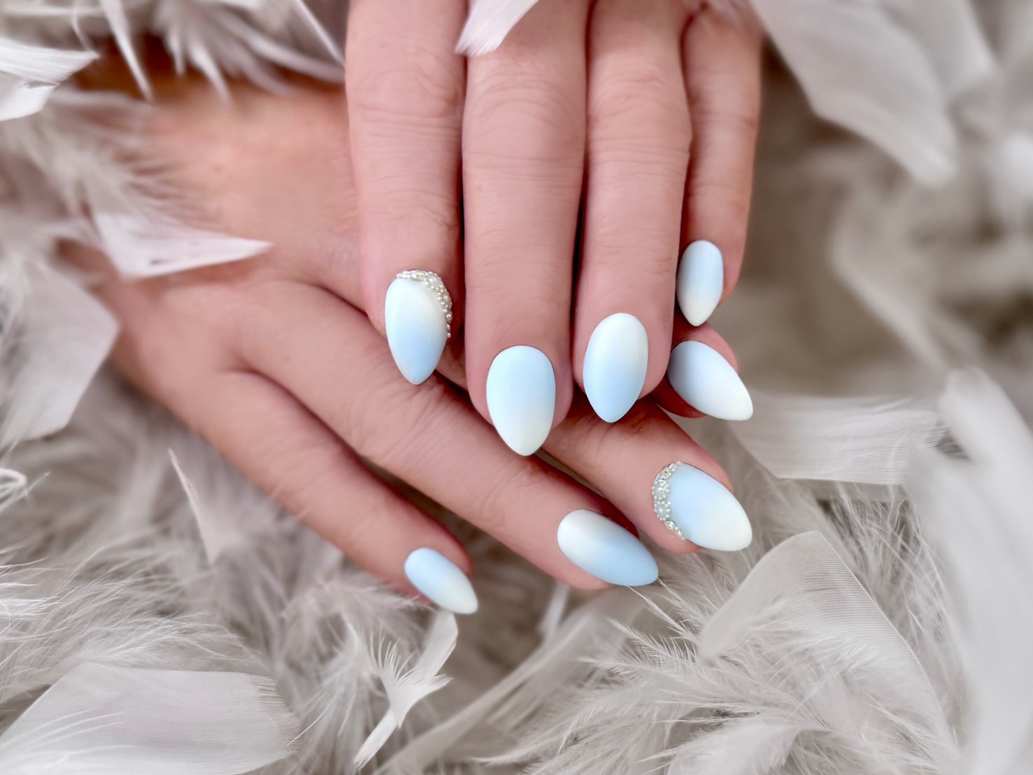 ブルーとホワイトのふんわりネイル