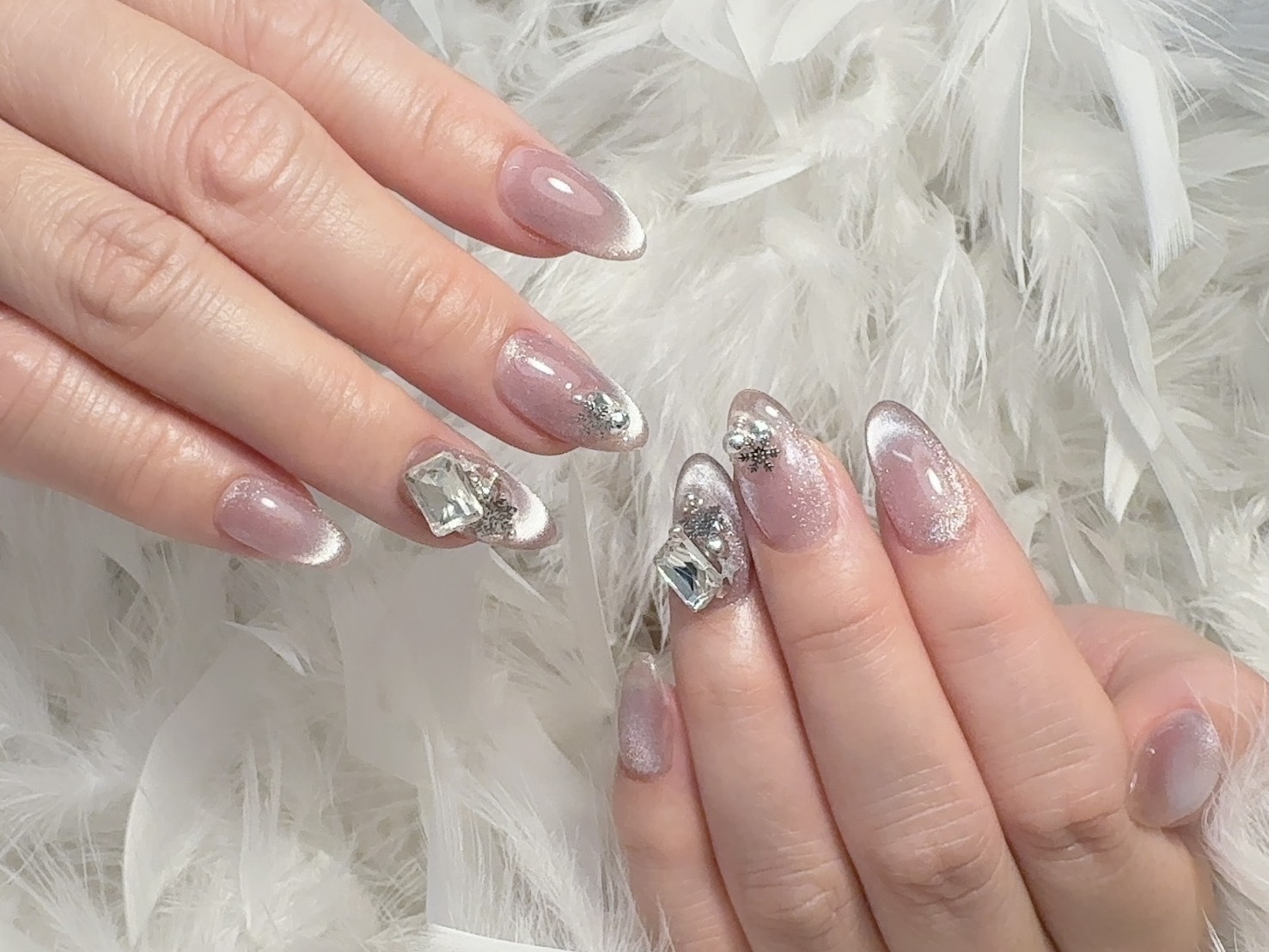 最近特に支持を集めているのが、フレンチ部分に輝きを集約するスタイルです。