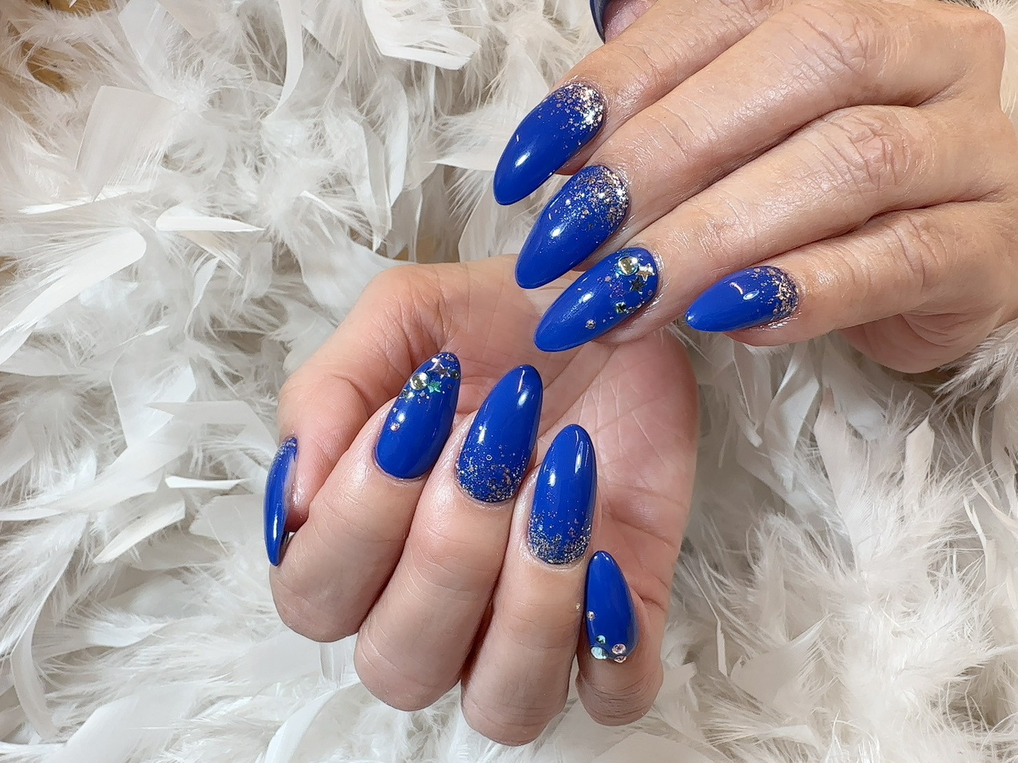 深みのあるブルーは、特別な季節にふさわしい品格と華やかさを兼ね備えています。