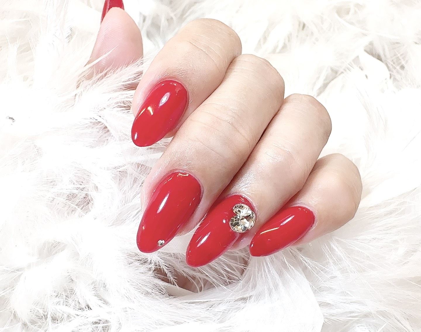 特別な日を楽しみながら、日常にもなじむデザインを意識しました。クリスマス気分を指先から高めてくれる、洗練されたレッドネイルです。