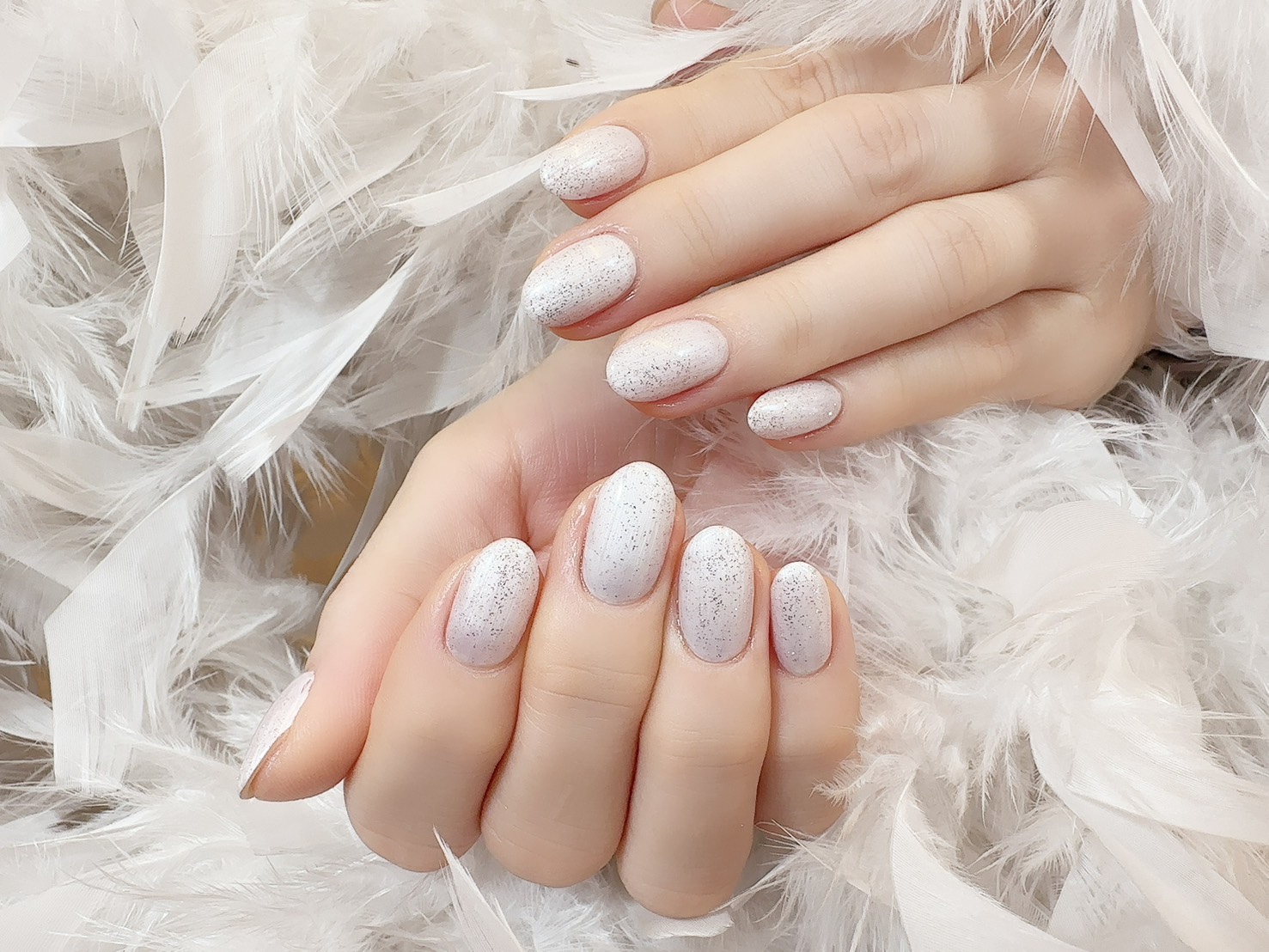 ミルキーなホワイトや、ラメ系のホワイトなど様々な種類があるので、お好きなイメージに仕上がります。