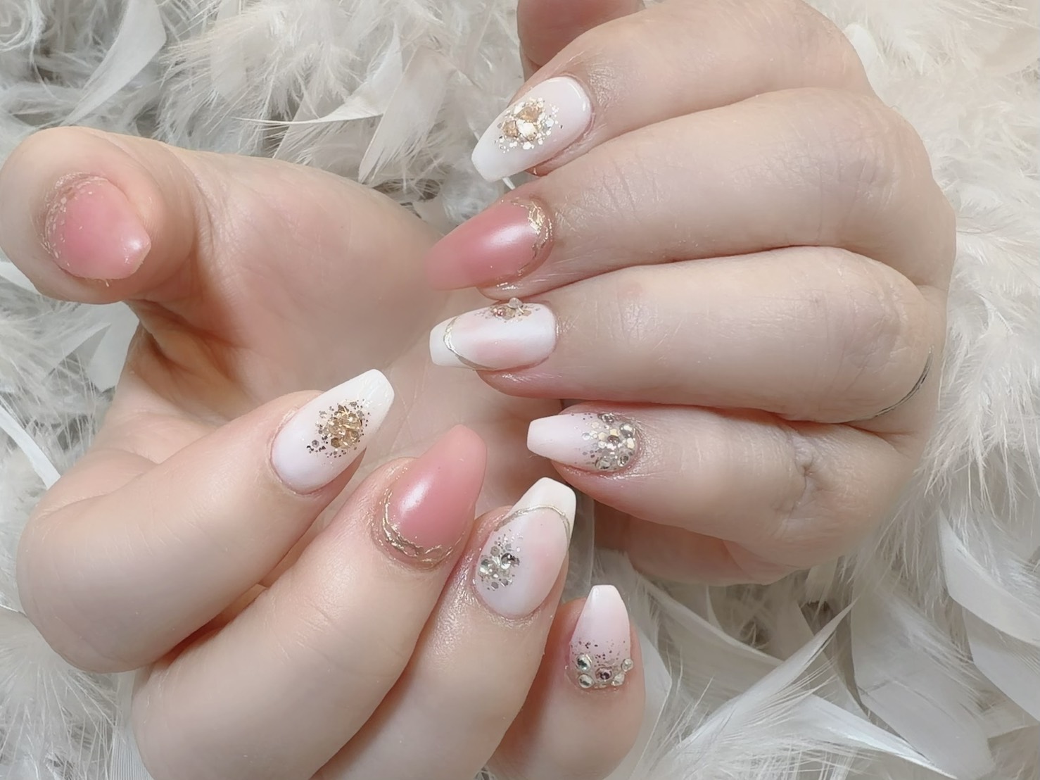 小指には2色を丁寧に混ぜ合わせたオリジナルカラーを使用し、さりげない個性をプラスしました。