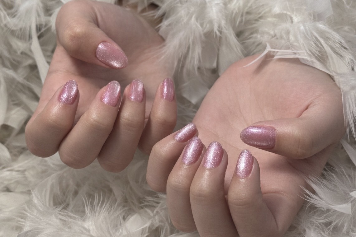 週末のご予定に合わせ、派手すぎず、それでいて指先がきれいに見える肌馴染みの良いマグネットピンクをご提案。