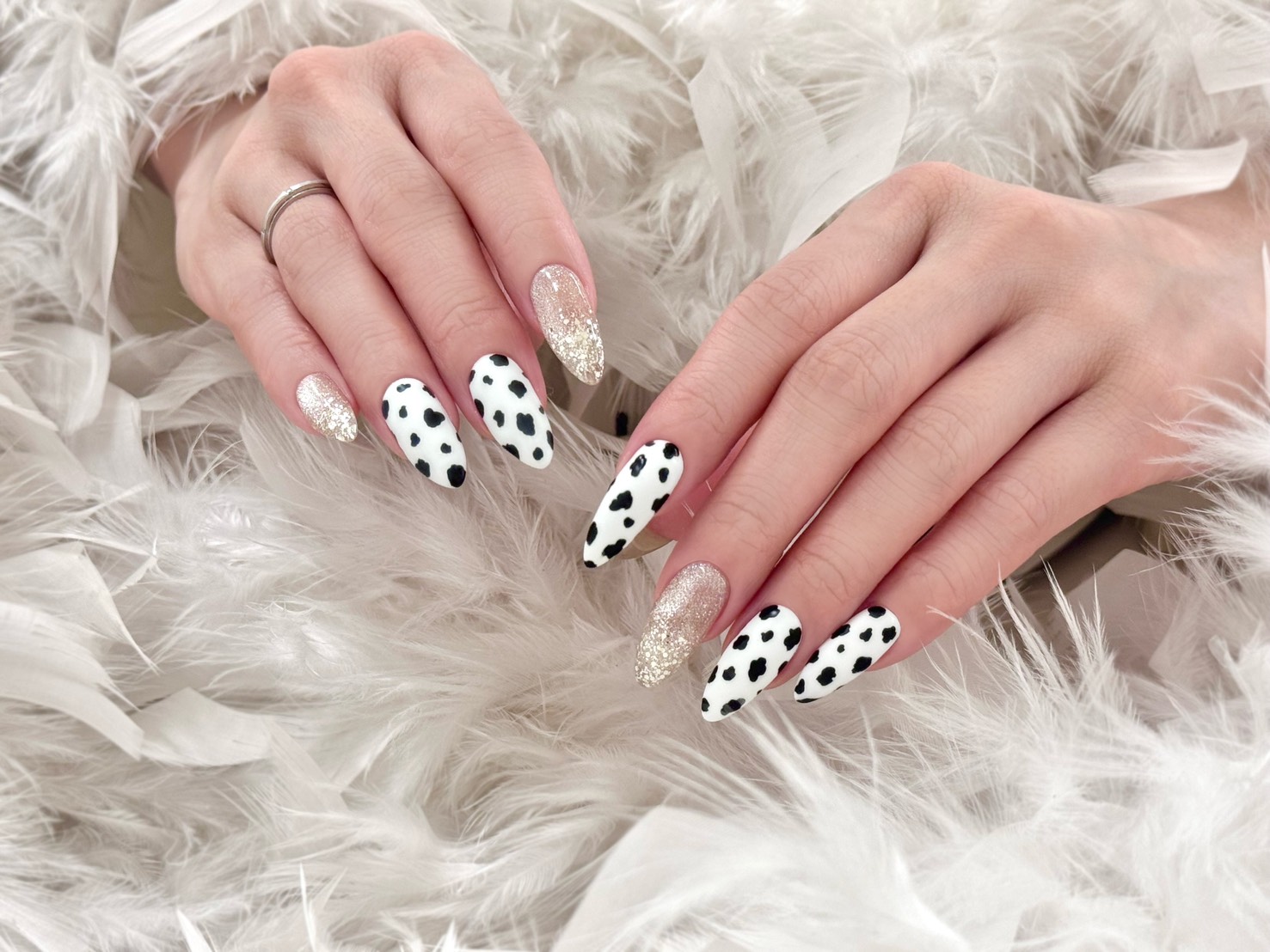 ダルメシアンはどこかクールで冬っぽい雰囲気を持つアニマルなので、この季節のファッションやネイルにも自然と馴染みます。