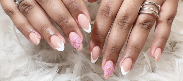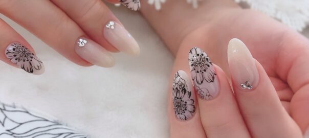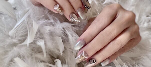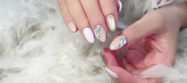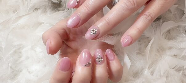 クリア・パール・オーロラのストーンを使って、流れる様なラインのストーンアートをデザインしました。