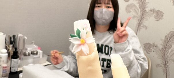 ロングネイルですが、カラーが薄い発色なので重くなり過ぎません。