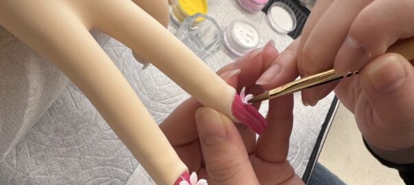 こちらのピンクはマットな発色なので、エアブラシの技術を使ってグラデーションにしています。