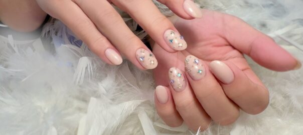 当店のオリジナルでミキシングした、シアーなピンクをベースカラーにしました。