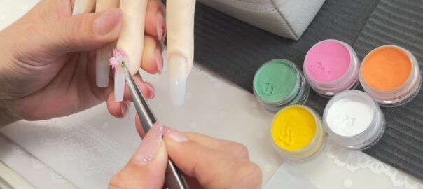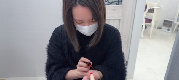 パーティの時のネイルは、ダンスを踊っている時にどんな指使いをするのかによって、ストーンを付ける位置を決めていきます。