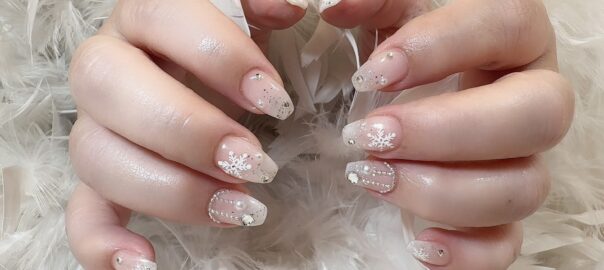 クリスマスシーズンに向けて、心が弾むデザインをオーダーいただきました。 ホワイトのグラデーションをベースカラーにして、指先に透明感とクリーンな印象を演出しました。 爪先にシルバーラメをさりげなく散らすことで、冬らしいきら … 続きを読む クリスマスネイル